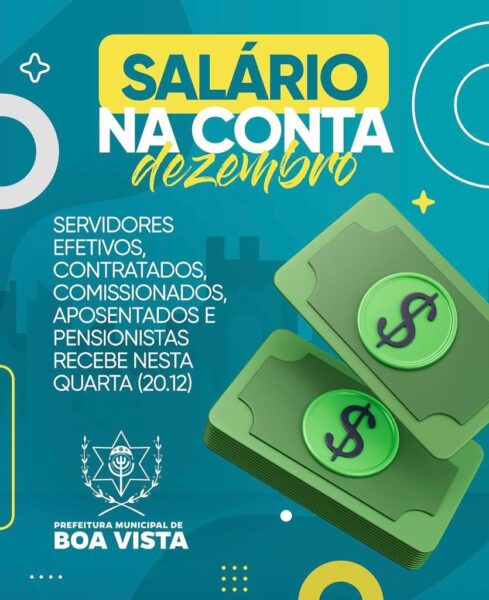 Prefeitura de Boa Vista anuncia pagamento dos servidores referente ao mês de dezembro 20 de dezembro de 2023