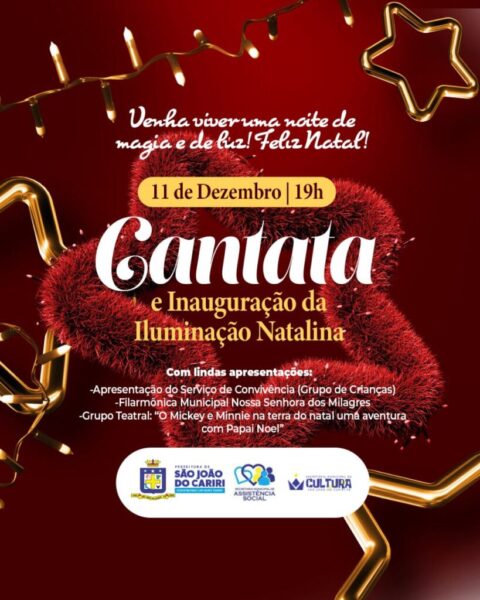 Prefeitura de São João do Cariri realizará cantata e acendimento das luzes natalinas nesta segunda-feira 9 de dezembro de 2023