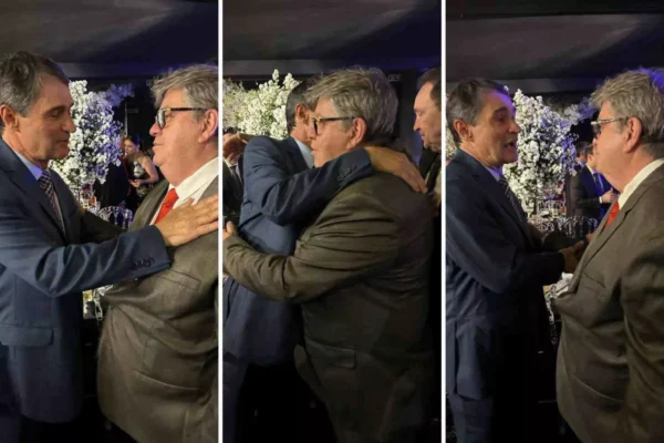 Romero Rodrigues e João Azevêdo trocam sorrisos e abraços durante casamento, em João Pessoa 18 de novembro de 2023
