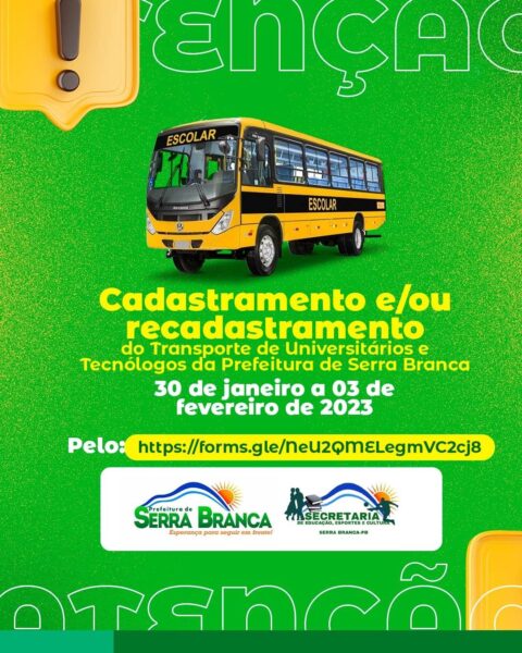 Secretaria de Educação de Serra Branca realiza cadastramento de estudantes para transporte universitário 31 de janeiro de 2023