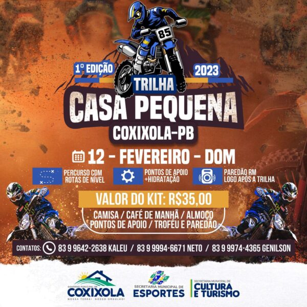 Prefeitura de Coxixola anuncia realização da ‘Trilha Casa Pequena’ no dia 12 de fevereiro 10 de janeiro de 2023