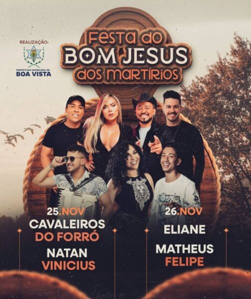Com shows em praça pública, programação social da Festa do Padroeiro de Boa Vista será iniciada nesta sexta; CONFIRA AS ATRAÇÕES 25 de novembro de 2022