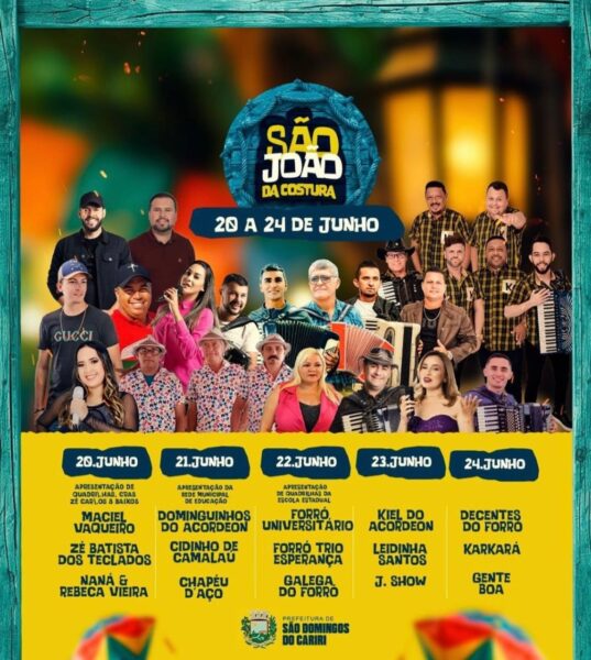 Prefeito Onildo Lindberg anuncia programação do Tradicional São João da Costura em São Domingos do Cariri 16 de junho de 2024