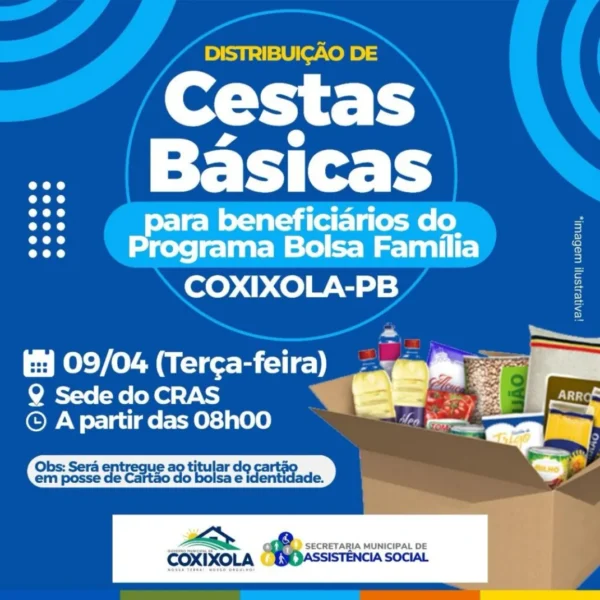 Prefeitura de Coxixola anuncia distribuição de cestas básicas para os beneficiários do programa Bolsa Família 5 de abril de 2024