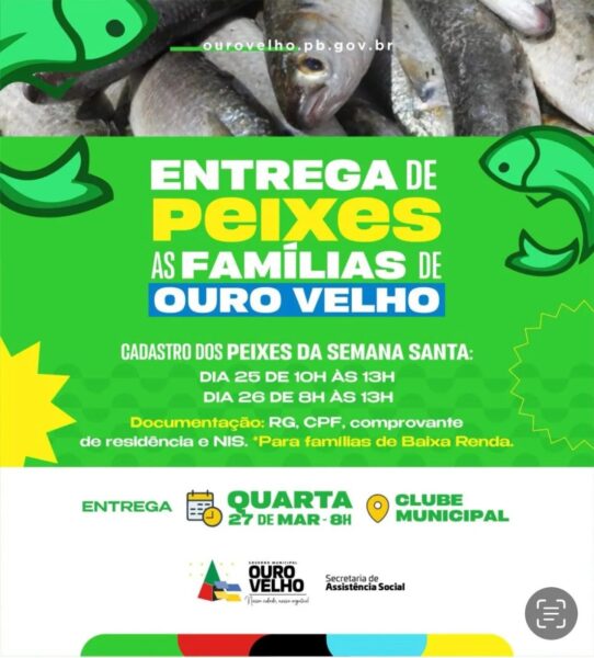 Prefeitura de Ouro Velho realizará tradicional entrega do peixe beneficiando diversas famílias 25 de março de 2024