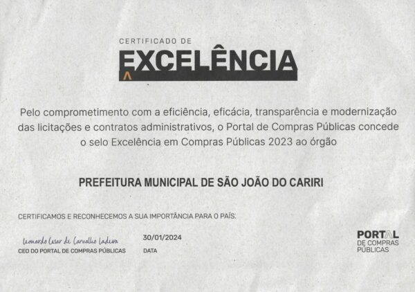 Prefeitura Municipal de São João do Cariri recebe reconhecimento por excelência em compras públicas 21 de março de 2024