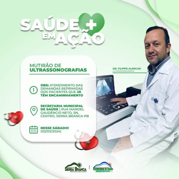 Secretaria de Saúde de Serra Branca realizará segundo mutirão de ultrassonografias 29 de fevereiro de 2024