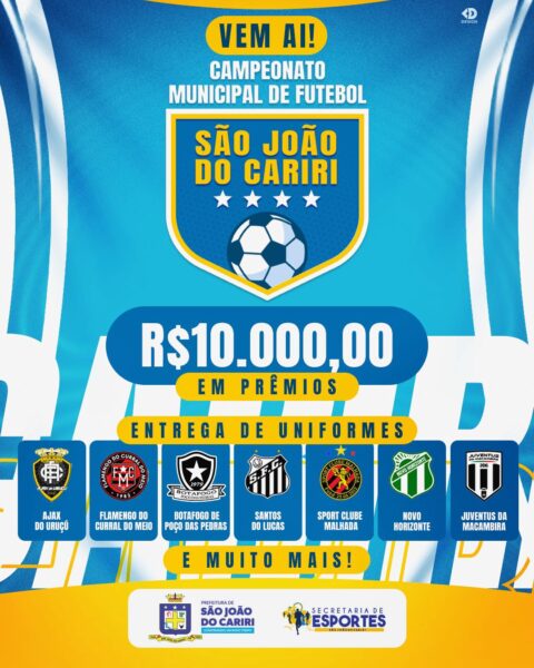 Com a entrega de uniformes e premiação histórica, Campeonato de Futebol de São João do Cariri terá sua grande abertura neste sábado 30 de janeiro de 2024
