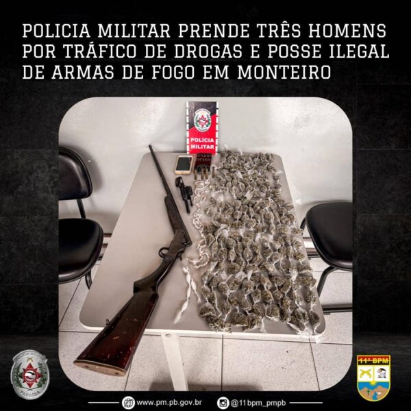 Polícia Militar prende três homens por tráfico de drogas e posse ilegal de armas na cidade de Monteiro 30 de junho de 2022