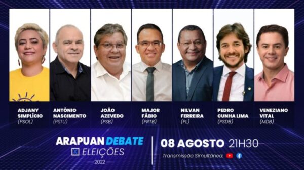 Primeiro debate entre todos os candidatos ao Governo da Paraíba no Sistema Arapuan acontece nesta segunda 5 de agosto de 2022