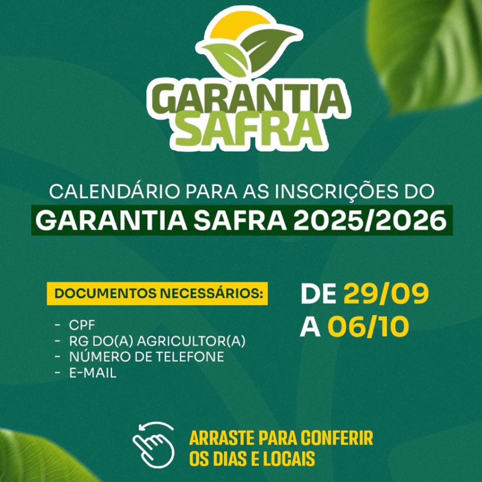 Secretaria de Agricultura divulga calendário de inscrições do Garantia-Safra 2024/2025 em Serra Branca; confira