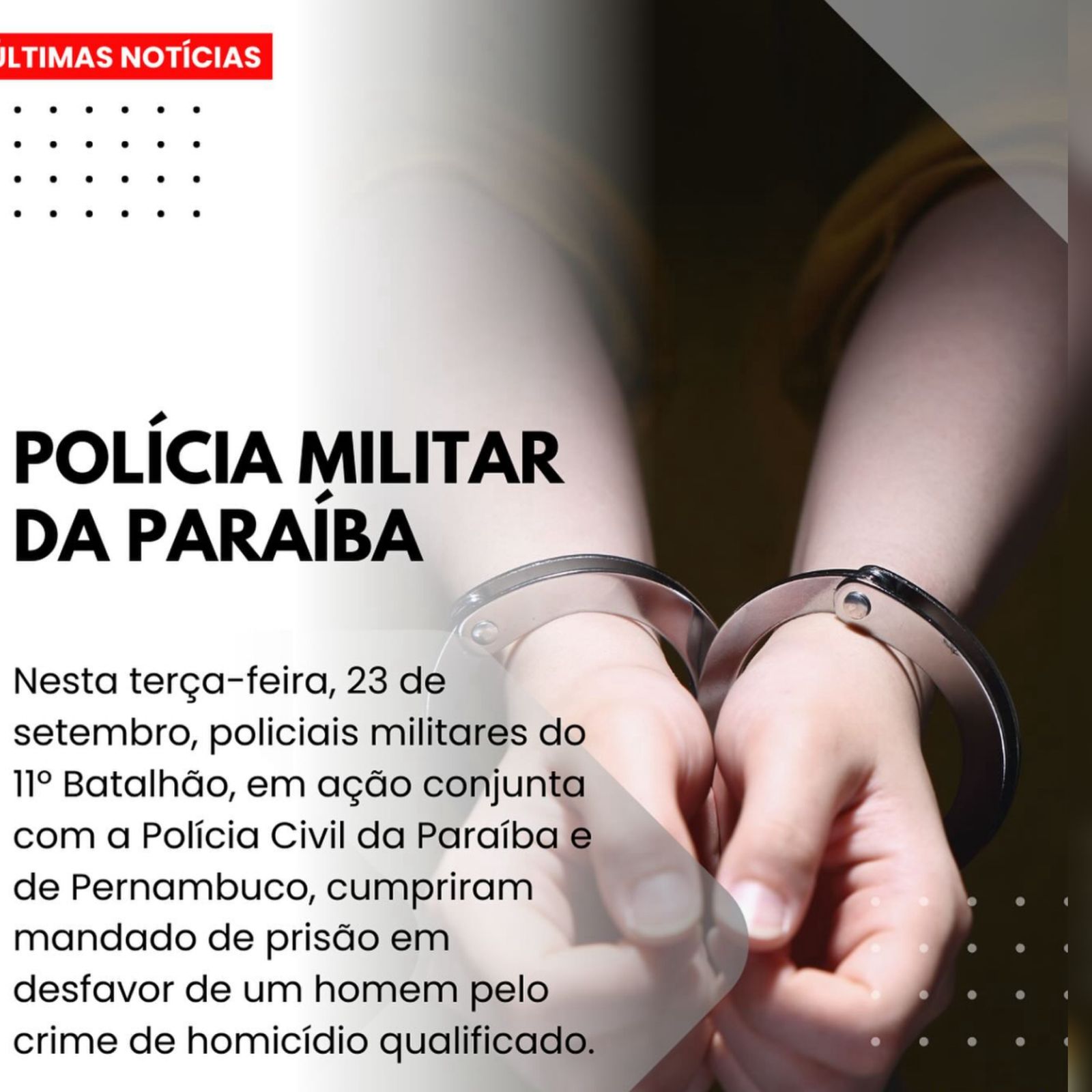 A Polícia Militar do 11º Batalhão cumpriu, nesta quarta-feira (09), um mandado de prisão na cidade de São João do Tigre, no Cariri paraibano. O mandado foi expedido contra um homem acusado de tentativa de homicídio. De acordo com as informações repassadas pelo 11º BPM, o indivíduo foi localizado durante uma ação dos policiais militares […]